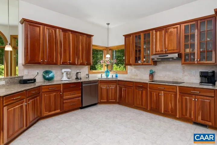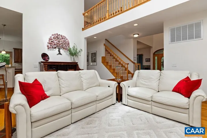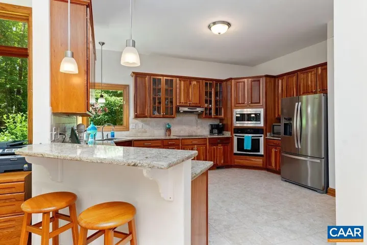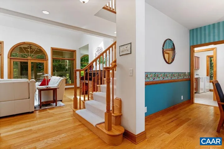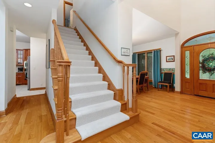 Exquisite and sophisticated, this home offers refined living on nearly 2 wooded acres with picturesque views and a serene setting. thoughtfully designed with timeless elegance, the interior is bathed in natural light and filled with stunning details, including oversized windows, skylights and hardwood floors throughout the main level. A soaring 2 story foyer and gorgeous oak front door sets a welcoming tone, leading to a front living room and a formal dining room, ideal for seamless entertaining. The gourmet kitchen is both stylish and functional, featuring beautiful quartz kitchen countertops, stone backsplash, all stainless appliances, custom cherry cabinets and a large walk-in pantry and separate utility closet. The adjacent sun room gives access to the large back porch looking out over lush landscaping.