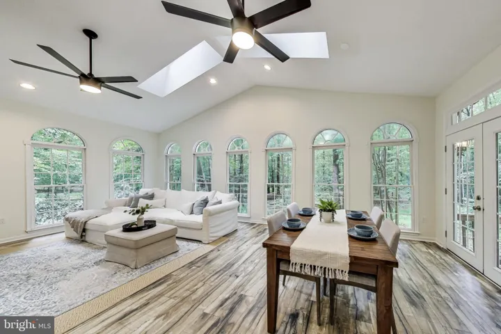 Inside, the main level features rich hardwood flooring and a thoughtfully designed layout perfect for both entertaining and day-to-day living. The updated kitchen is a chef’s dream with granite countertops, stainless steel appliances, and a double wall oven. Separate family and living room spaces provide space to spread out and relax, while the dedicated office space is ideal for working from home. The sunroom with vaulted ceilings and 270 degree views will be your favorite feature of the main level, and the perfect space for indoor to outdoor living, opening to the expansive deck with wooded views. Up the stairs you’ll find a primary bedroom suite, and three additional spacious bedrooms. The fully finished basement offers even more space for entertainment with a recreational room fitted with a bar and movie theater. The lower level features a bonus space beneath the sunroom that creates the perfect opportunity for your at-home gym, or a future in-law suite.