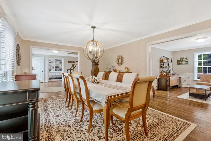 As you enter the home, from the foyer you will observe on the left the private office/library space with french doors and built-in shelves and the spacious dining room on the right. This room will hold even the longest extended table plus china cabinet and sideboard, as well! The wall of windows lets in so much light!