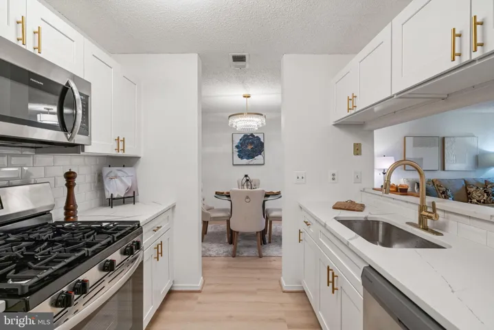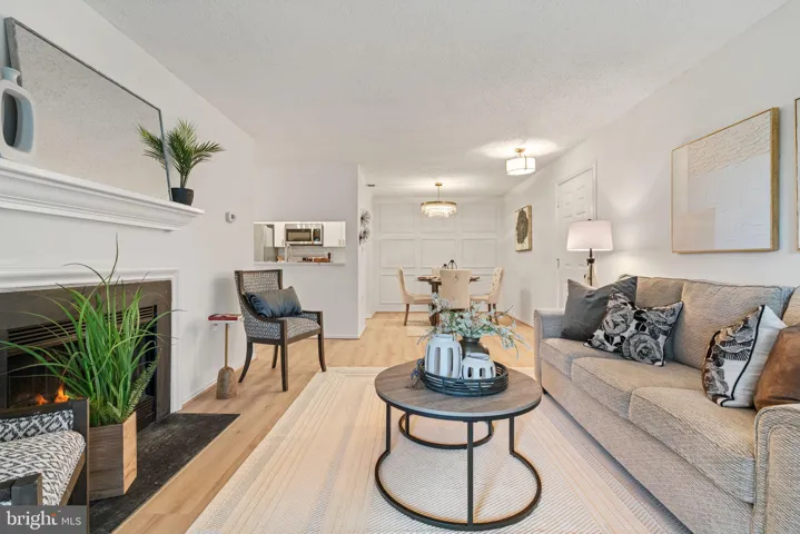 The kitchen boasts all-new stainless steel appliances, stunning veined countertops, updated white shaker cabinetry, and sleek new gold plumbing fixtures and cabinet hardware. The full bathroom has been renewed with elegant LVP flooring, a modern vanity, and upgraded lighting and fixtures. In the living room, you’ll find a cozy fireplace flanked by built-in bookshelves—perfect for relaxing or entertaining. Step outside to a private balcony to enjoy peaceful evenings or morning coffee.
