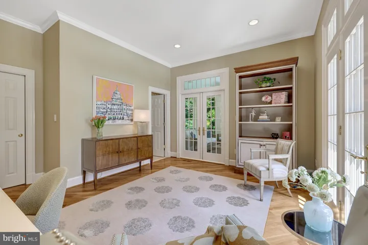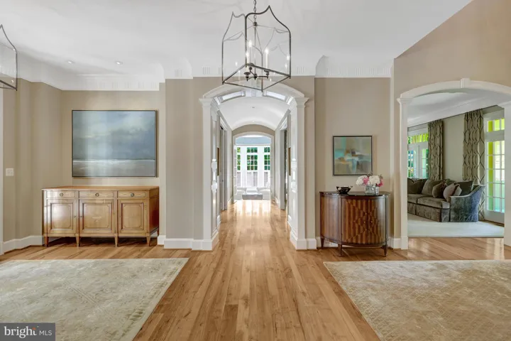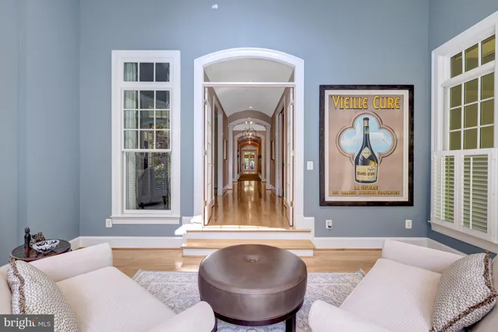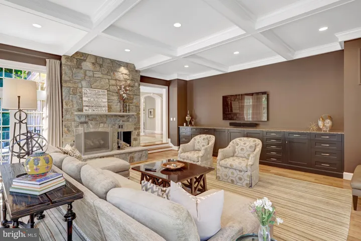 Step inside and experience remarkable attention to detail—from the rich walnut flooring to the custom millwork, arched doorways, and dramatic, light-filled windows. The main level offers a gourmet kitchen & breakfast room with a cozy stone fireplace, a handsome office, a private conservatory, a spacious family room with a coffered ceiling and a stone fireplace and a private main level bedroom/office and bath that lead to an inviting screened porch. French doors across the rear of the home lead to an expansive stone terrace overlooking the private rear yard.