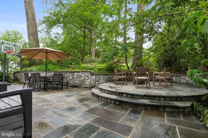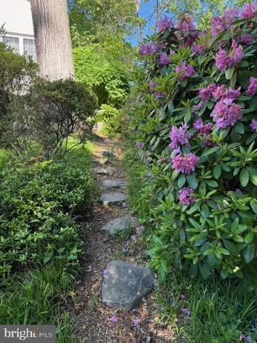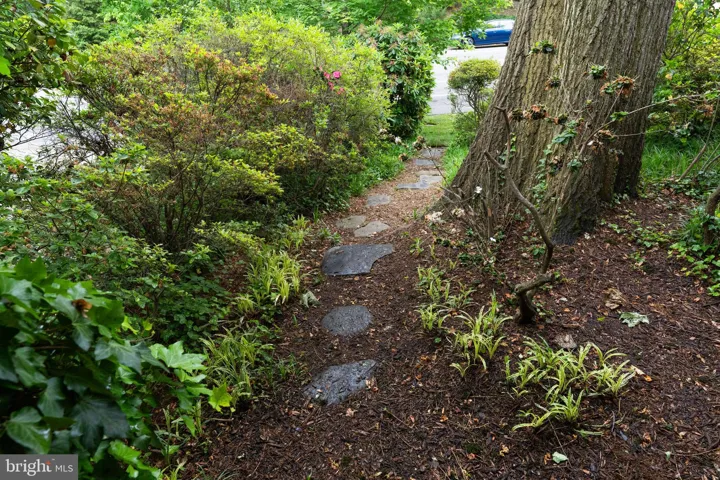 Out back, enjoy a serene, terraced retreat featuring slate hardscaping, a circular fire pit patio, and an expansive dining area perfect for gatherings. Meander past blooming azaleas, hostas, ivy, and ornamental grasses to find a fenced garden and play zone—complete with a whimsical Hobbit house and mature poplars offering dappled shade. Stone paths and lovingly maintained plantings make this backyard a true escape.