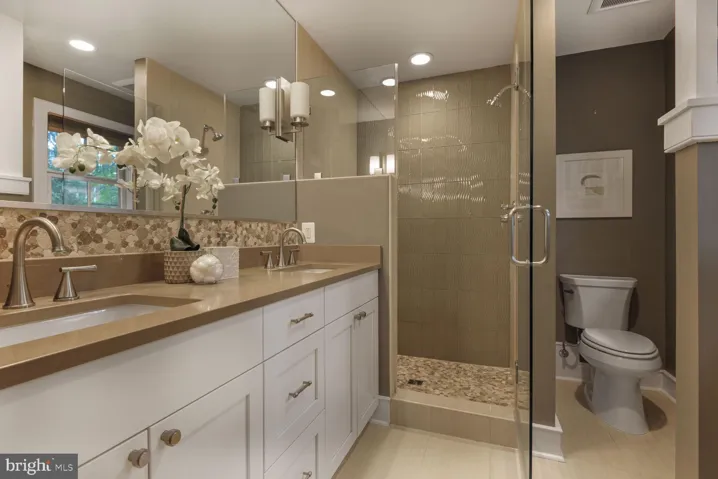BELOW TAX ASSESSMENT: UNEXPECTED STYLE AND FLAIR. Renovation and addition designed by renowned architect Kevin Ruedisueli. Totally redone by the builder / artist owner, this home’s open, modern interior will surprise and impress you. Gourmet kitchen, open floor plan, contemporary touches. Designer baths with radiant flooring. High-end windows, doors, hardware, and trim. Wonderful great room with vaulted ceilings and fireplace. Cozy lower level family room / studio. Four super-private bedrooms, each with their own space, including a spacious primary suite with huge closet and upgraded bath and adjacent study / home office. Advanced, super-high-efficiency 6-zone HVAC. Large, super-private lot with lots of room to expand. Big rear deck overlooking large back yard. Circular drive with home set back far from the road. Outstanding location walkable to the center of Oakton, right behind Flint Hill School, with easy access to Metro, I-66 and 123.