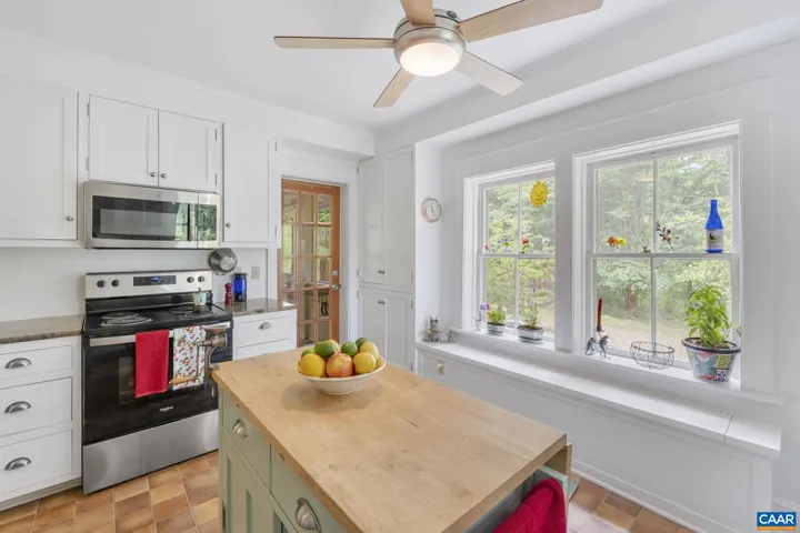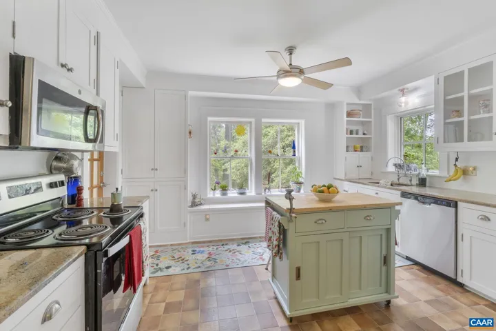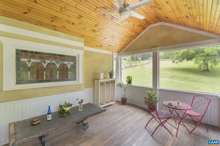 Nestled at the end of a winding lane among stately trees and flowered fields, this 1930?s craftsman-style cottage balances architectural character and modern conveniences with storybook charm, the result being living spaces as magical as they are comfortable and welcoming. Solidly built and lovingly cared for, the home features a deep front porch, original hardwood floors, a light-filled modern kitchen, and an expansive sunroom with radiant floor heating and one of two Jotul stoves. Additionally, the entry level offers a large bedroom, full bath, family room and dining room as well as a home office and a covered rear porch. Accenting and delighting these spaces are stained-glass windows, glass knobs, built-in bookshelves, original moldings, and arched doorways. Up the staircase are two additional bedrooms that include a Jack and Jill bath while in the basement one finds ample room for storage or future expansion plus a German propane furnace (2021) that heats through the home?s restored radiators. Outside, the elevated 4.3 acre lot features extensive walking trails, a generous 1 acre fenced area for pets or play, a sizable storage building, formerly a garage, and a garden shed, all a mere five-minute drive to Pantops.,Glass Front Cabinets,Granite Counter,White Cabinets,Fireplace in Family Room