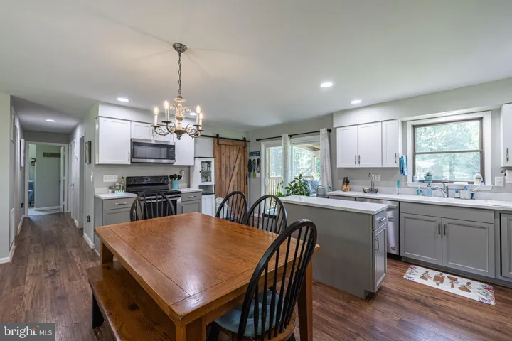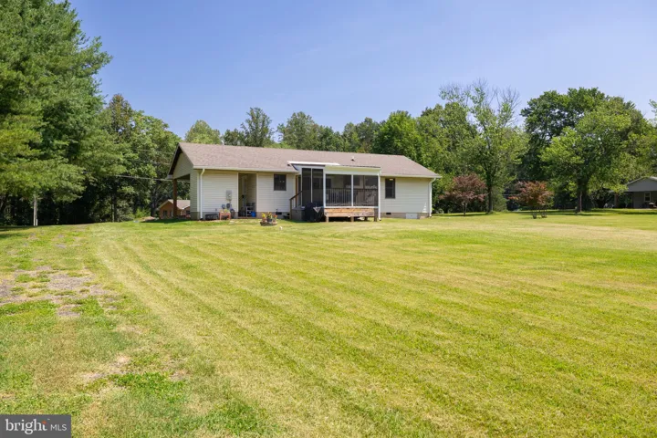 IMPROVED PRICE! Single level living in a peaceful country setting! This well-maintained brick rambler offers an open concept great room blending the living, dining, and kitchen spaces. The kitchen has two-tone cabinets with smooth Corian countertops, stainless-steel appliances and laundry area. Down the hall are two bedrooms , a hall bath and the primary bedroom with en-suite bath. A screened deck off the kitchen has a ‘doggy door’ for your fur babies. The property comes with DogWatch, and a dog kennel or chicken coop in the shade of the trees. Situated on 1.55-acres in a neighborhood with no HOA. The property features a large detached garage (24 x 40’) with a 10’ tall garage door, perfect for the auto mechanic or woodworker and lots of storage area. There is an additional storage shed next to a frost-free hydrant, with electricity and lights for your lawn equipment. Upgrades: created open concept great room, new ceiling and can lights in great room, new gutters on house and garage, new screened-in porch, new railings on front porch and carport doors, new water treatment system, new gravel in driveway, and new landscaping.