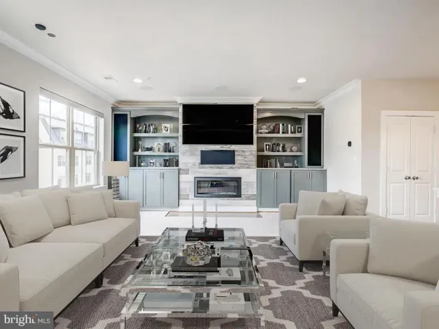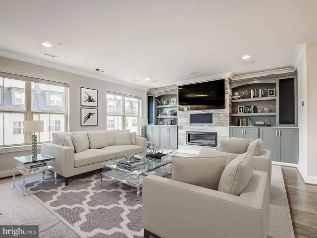 Enjoy hardwood floors throughout, an open-concept main level with tall ceilings, and exciting chef’s kitchen with quartz countertops, high-end cabinetry, GE Profile appliances w/hood, and large quartz embellished breakfast island. Living area features custom built-ins to include AV system with flat panel TV and surround sound. Area fireplace is centerpiece and cherry on sundae.