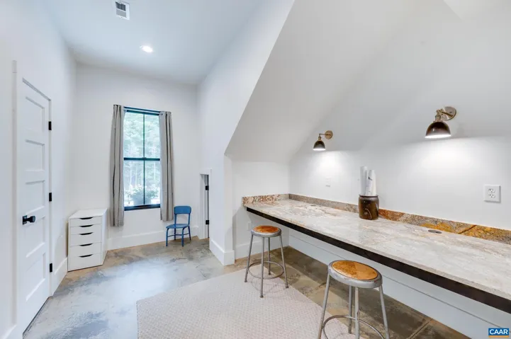 *Charming Modern Homestead with Pond and Heavenly Pastures! This custom 4-6 bedroom home offers a balance of modern amenities and homesteading features on a spacious 28.25 acres. The property is fully fenced with four pastures, each equipped with water access, perfect for various agricultural pursuits. Inside, the modern kitchen stands out with its walk-in butler pantry equipped with ample storage. The airy living room has large windows that let in plenty of natural light, providing a serene ambiance. The master suite is a highlight, featuring a sitting area with a view of the pond and a luxury master bath complete with a walk-in shower and tub. Reading enthusiasts will love the floor to ceiling bookcases with sliding ladder in the library. Outside, the property is a unique find with its pond, complete with private beach and dock. It’s an ideal spot for leisure or entertaining all ages. The modern garden walls are excellent for homesteading. Rare find for this area!,Granite Counter