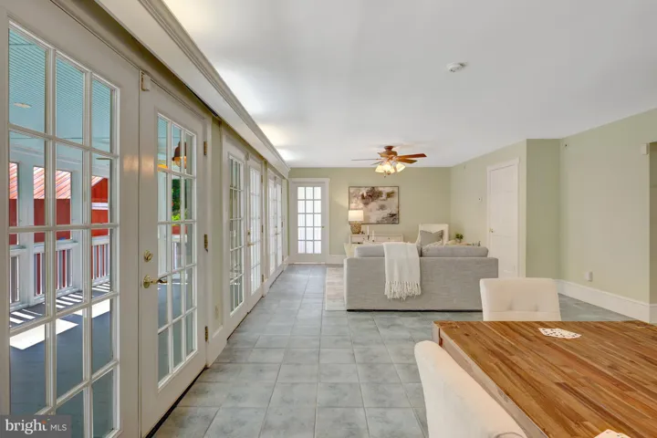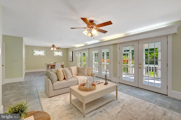 A three-level addition, completed around 2000, brings even more space and flexibility. On the main level, you’ll find a stunning 31′ x 13′ family room with in-floor heating, a full bathroom, and potential for a main-level primary or guest suite. French doors lead to a serene flagstone patio shaded by an English rose-covered pergola—perfect for outdoor dining or a spot to peruse Instagram.