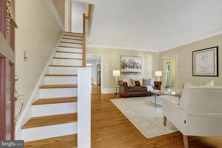 Step inside and be instantly drawn through the original home, the thoughtfully designed addition, and out into the lush backyard. The living room is bright and inviting, featuring original hardwood floors, elegant moldings, and French doors that open to a tranquil screened porch—just one of three incredible outdoor living spaces.