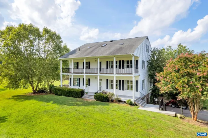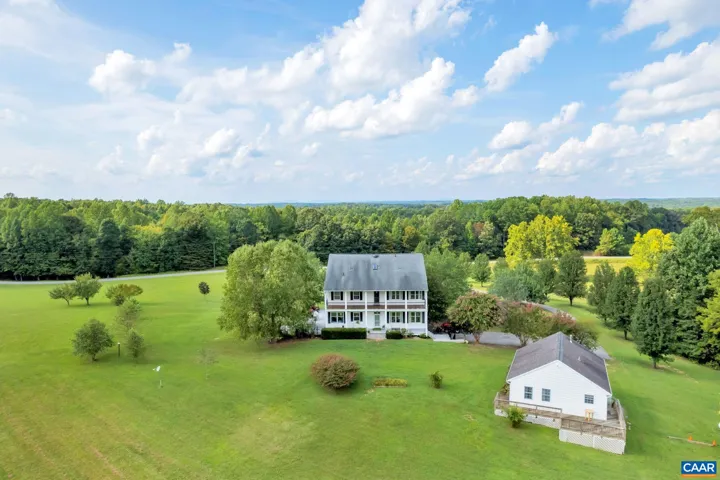 Peaceful living can be found in this light filled sprawling three level home with delightful cottage on 20 rolling acres, which is comprised of two ten acre lots. Bring the animals and start your own farm. The floor plan is perfect for entertaining, with its easy room flow. Spacious dining area ideal for family gatherings. Enjoy the 10 foot ceilings and large owners suite with a door out to the rear balcony. There are newer engineered hardwood floors. There are front and rear porches on both two levels with a charming guest house with two bedrooms and full bath for family and friends. The neighborhood amenities include a large stocked pond as well as pole barn for large gatherings. Surrounded by nature, this home offers privacy, tranquility, and ample space to enjoy the best of country living.,Solid Surface Counter,Fireplace in Family Room