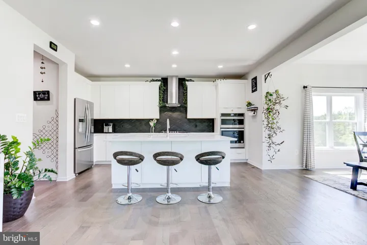 Gourmet kitchen features upgraded cabinetry, quartz countertops, a large center island, stainless-steel appliances, and a nice pantry—ideal for everyday cooking and hosting.