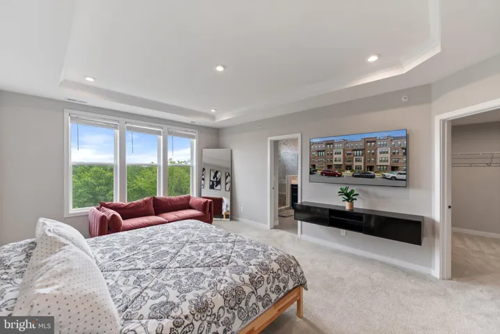 The gourmet kitchen is a chef’s paradise, featuring top-of-the-line stainless steel appliances, elegant quartz countertops, and a stunning waterfall island. A butler’s pantry and a wet bar with ample cabinet space complete this culinary haven. Relax on the main level balcony and enjoy serene views of the community’s green spaces.