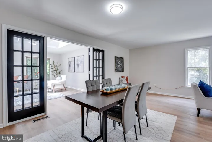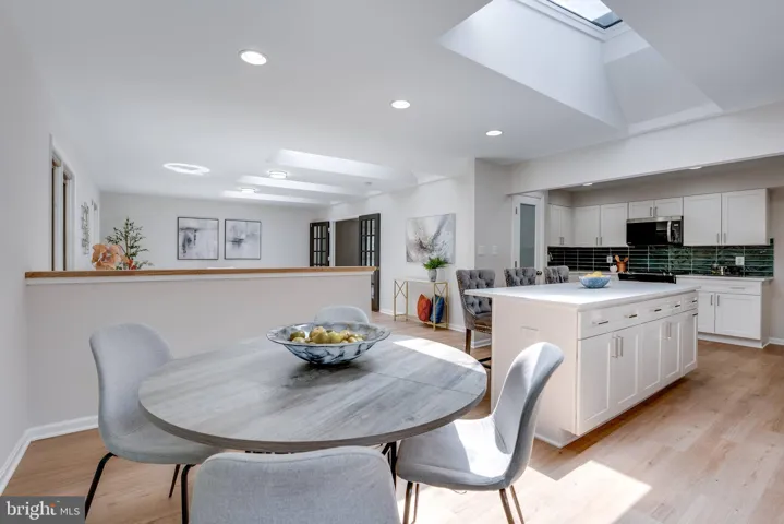 The main level welcomes you with a bright, open floor plan, complete with a spacious living room centered around a cozy fireplace, a formal dining room, and a convenient half bath. A spectacular 400+ sq ft addition filled with natural light and skylights elevates the living experience even further.