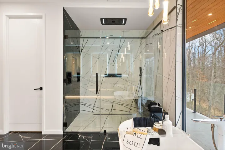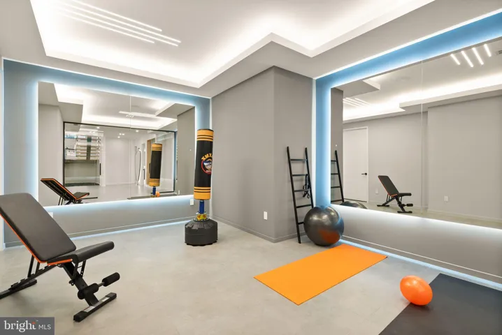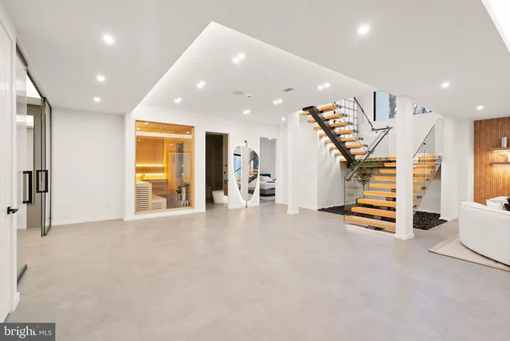 Striking details include floating stairs with glass railings, a soaring 2-story foyer, and luxury wellness features such as a custom dry sauna and steam shower. The exercise room ensures health and wellness are prioritized, while the stunning wine display and wet bar are perfect for entertaining in style.