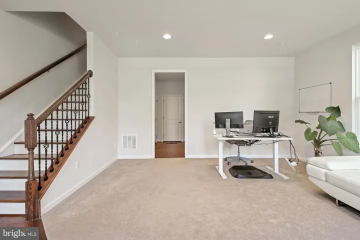 Welcome home to Beautiful ‘END-Unit 4-level townhome with “rooftop terrace” .7 miles to Silver Line Metro!! **North East Facing & Freshly Painted**. This bright & sunny east facing end-unit townhome is located across from the clubhouse with ample parking spaces. Convenient to shopping at Ashburn Station and Brambleton Town Center. Almost 3000 sf of finished living space, including a second-level covered balcony with a built-in gas fireplace, or enjoy the Rooftop terrace overlooking the ‘Highly Sought After’ neighborhood of Westmoore at Moorefield. This home has ( 4 ) bedrooms ( 4.5 ) bathrooms, a large 2-car garage, and driveway parking! Entry level first floor bedroom /office and full bathroom make for easy access. Hardwood stairs lead to the main level, an open concept with beautiful Gleaming hardwood throughout. Gourmet kitchen with white cabinets, beautiful quartz counters, a large island, glass backsplash, stainless steel appliances, a double oven, and a cooktop. Large sliding glass doors lead to the covered patio with the dining room on one side and a family room on the other. Hardwood stairs lead up to the bedroom level with 3 good-sized bedrooms and a laundry room. The bedroom level has a stunning primary suite with tray ceiling, two walk in closets, attached luxury bath with raised height vanities and convenient laundry area in the upstairs hall. 2 more generous secondary bedrooms and upgraded full bath complete this level**The 4th level includes a family room, bedroom, and rooftop terrace. Westmoore offers ‘Resort-style’ amenities, including; a community pool, clubhouse, exercise room, and 2 parks, including Evermore Park with it’s dog parks (2 parks for small and large dogs), a lake with fountains, amphitheater, large open grass space, 2 tot lots/playgrounds, and miles of walking/jogging trails throughout the community, Walk to soon to be opened Silver line metro, close proximity to Loudoun County parkways, Dulles Greenway and Not too far from fine dining and entertainment Unmatched convenience with proximity to Dulles Airport, Dulles Greenway, and shops, restaurants, and entertainment at Loudoun Station and Broadlands Marketplace—not to mention direct access to the Ashburn Metro!