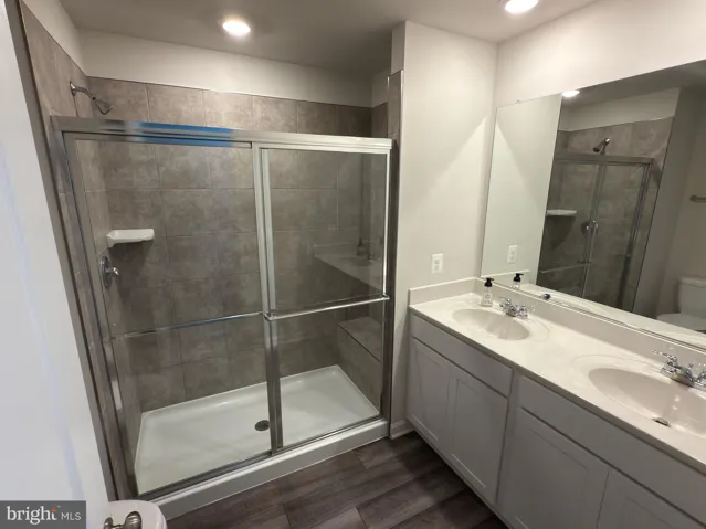 Upstairs, you’ll find 3 bedrooms, 2 full bathrooms, and a laundry area. The primary suite includes a large walk-in closet, double vanity, and a tiled walk-in shower with sliding glass.