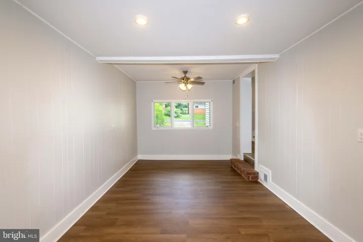 Primary bedroom is on main level and full bathroom with walk-in shower. Two bedrooms upstairs (carpeted in 2025) with full bathroom. Small basement has washer and dryer. Fireplace in dining room or room can be used for family room. Your choice!
