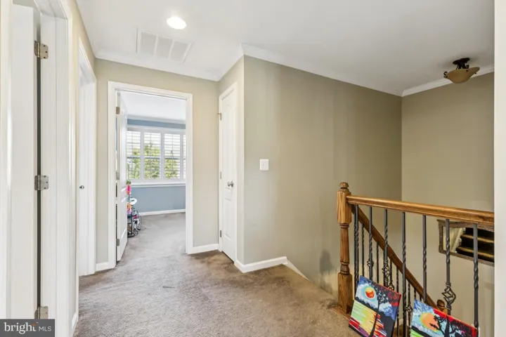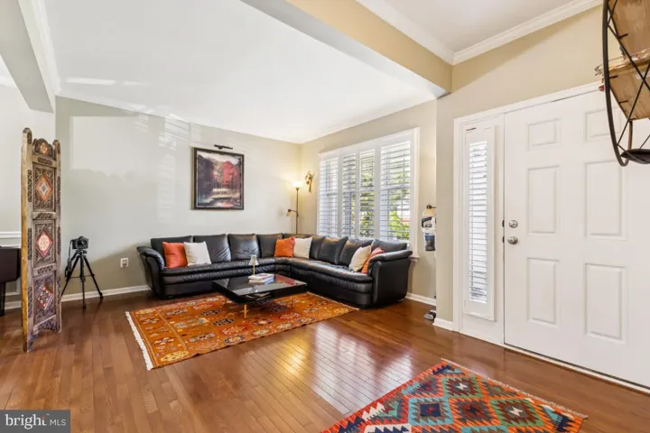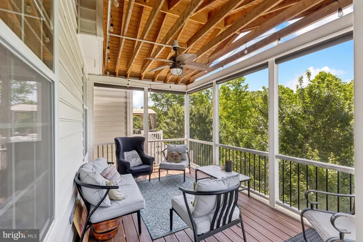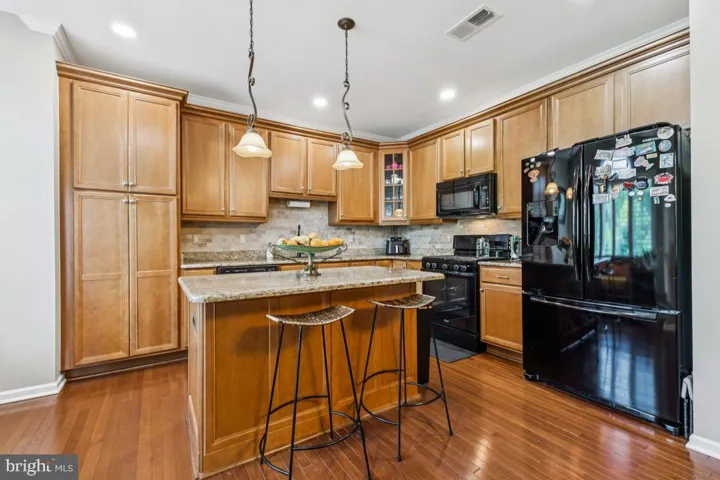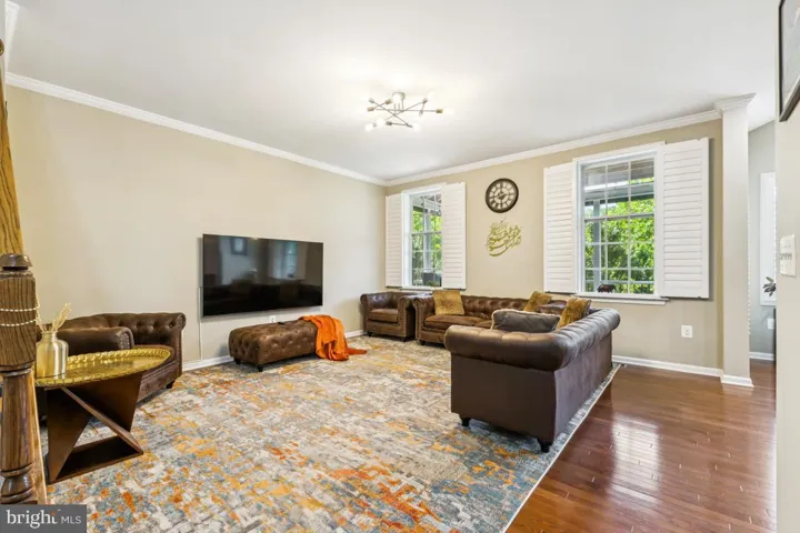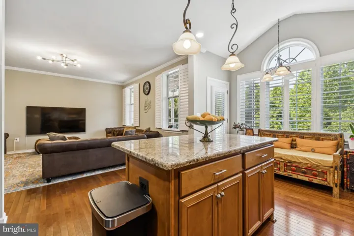 The main level features gleaming hardwood floors, crown molding, custom window shutters, and a bright, spacious dining room with elegant shadow boxes. The eat-in kitchen is a chef’s dream with granite countertops, a large island, recessed lighting, and is open to the cozy family room, which leads to a screened-in deck with sun-blocking blinds—perfect for relaxing or entertaining. Enjoy the charming front porch, 1-car garage, and a walkout patio from the lower level.