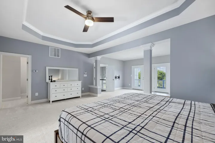 Upstairs, the luxurious primary suite offers a true retreat with plush carpeting, a private deck, generous walk-in closet, and a spa-like ensuite bathroom featuring a soaking tub, glass-enclosed shower, and dual vanities. Three additional bedrooms and two full baths provide ample space for family and guests plus the laundry room is on this bedroom level.
