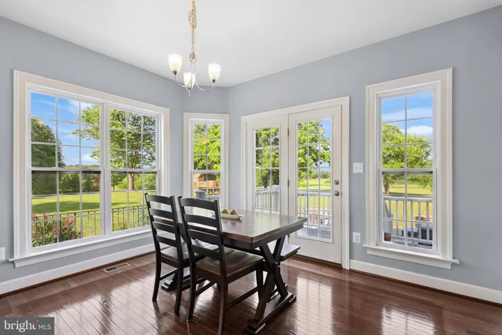 Step through the front door to be greeted by rich hardwood floors, a chic sitting room, and a light-filled formal dining space perfect for entertaining. The heart of the home is the open-concept gourmet kitchen, complete with granite countertops, stainless steel appliances, modern pendant lighting, and a spacious raised island. A sun-drenched breakfast nook with floor-to-ceiling windows offers captivating views of the backyard and features a walk out to the deck and patio levels.