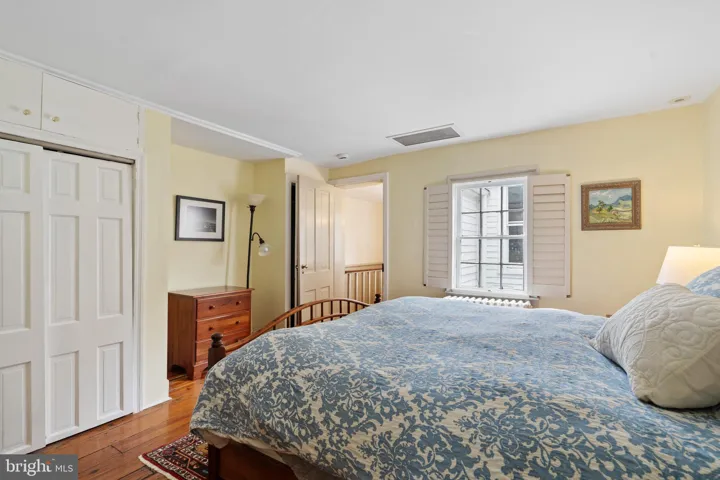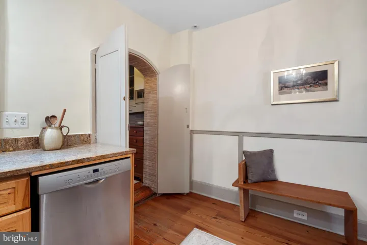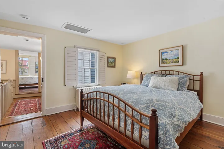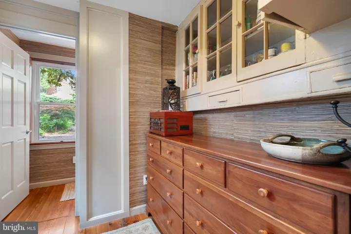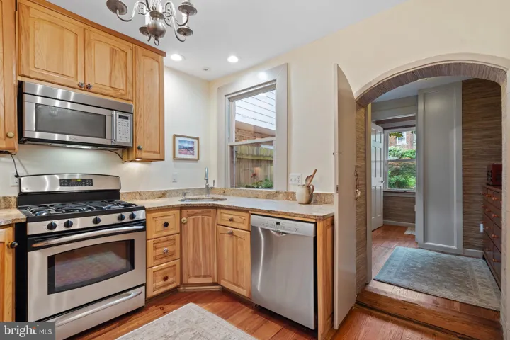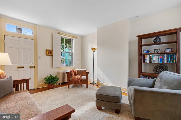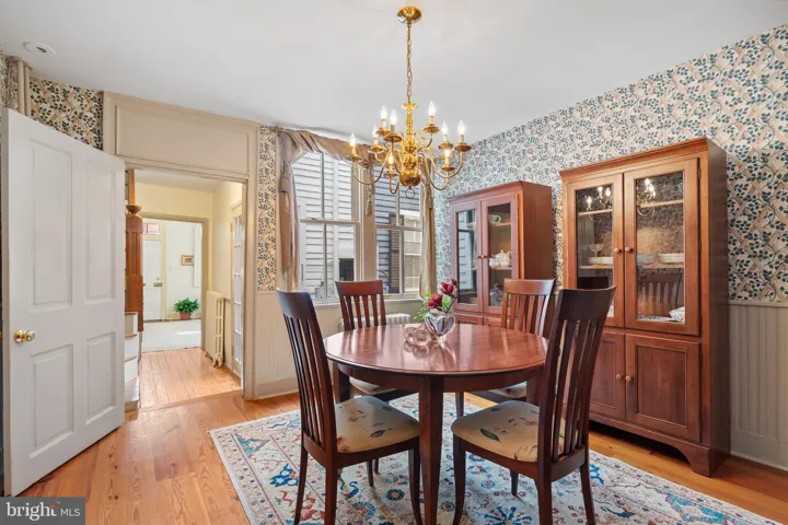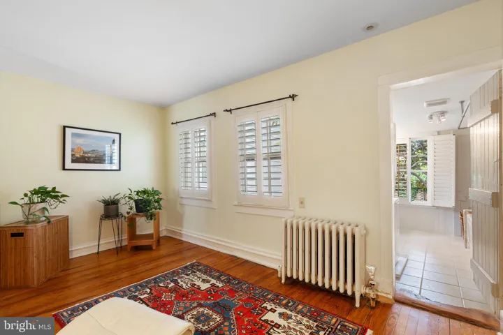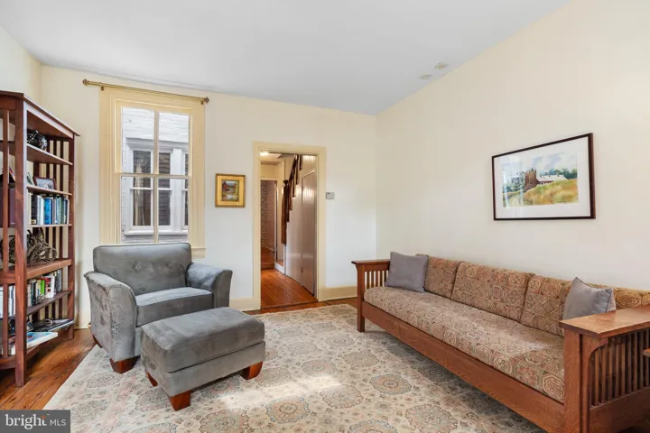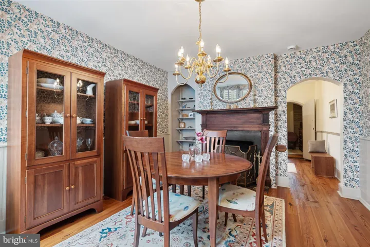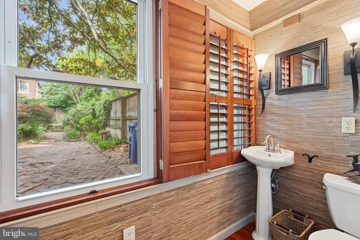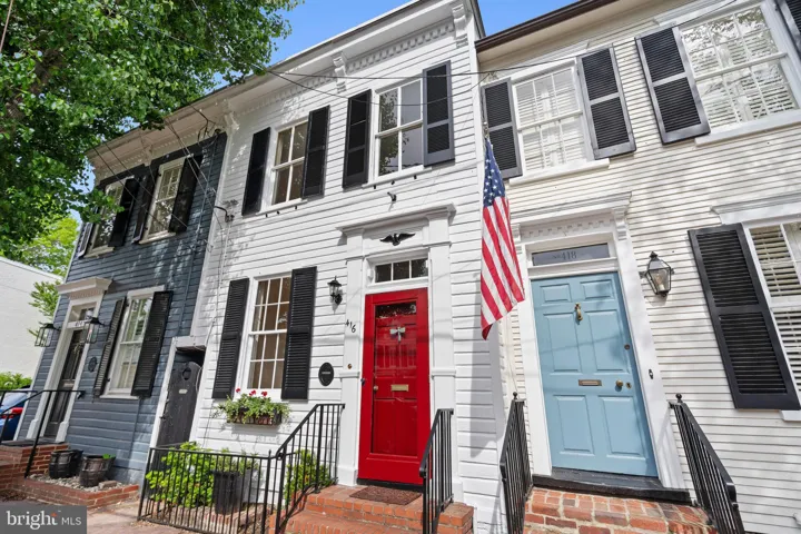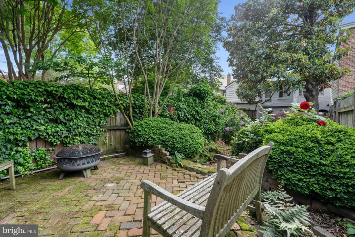 Nestled in the heart of Old Town Alexandria, this spacious Federal-style residence exudes historic charm. Original pine wood floors, high ceilings, and tasteful period details welcome you into the living room. The elegant dining room features built-in shelving, a fireplace, beautiful wallpaper, and a graceful archway entry into the kitchen, which is equipped with sleek stainless steel appliances, abundant storage, and gas cooking. Off the kitchen is a convenient, rarely-offered mudroom with additional cabinet space, and a powder room in the back. Upstairs are three large rooms (two bedrooms and an office or den), which offer abundant natural light through windows adorned with plantation shutters. Outside is a deep backyard with magnificent gardens, a mature magnolia tree, brick patios, stonework and sitting areas.