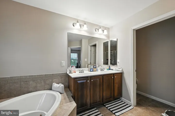 Retreat to the luxurious primary suite with dual walk-in closets and a bump out. Primary bathroom has soaking tub, dual sinks, and a separate shower. Upstairs has two additional bedrooms and a bathroom.