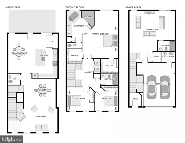 The upper level includes a luxurious primary suite with two walk-in closets and a spa-style bath with soaking tub and frameless shower. Two additional bedrooms, a full hall bath, and a laundry room complete the upper level. The fully finished walk-out lower level includes a rec room, full bath, and access to a private backyard.