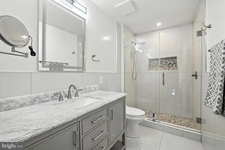 The bedroom level is complete with 3 additional nice-sized bedrooms and an additional full bath. The secondary bathroom has also been completely updated 2025 to include custom cabinets, marble throughout and large shower.