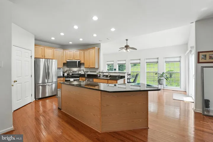 The main level features hardwood throughout. Kitchen has stainless steel appliances, gas stovetop, custom backsplash, granite counters and large island.