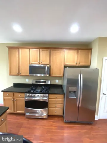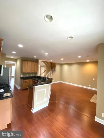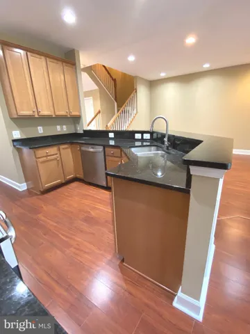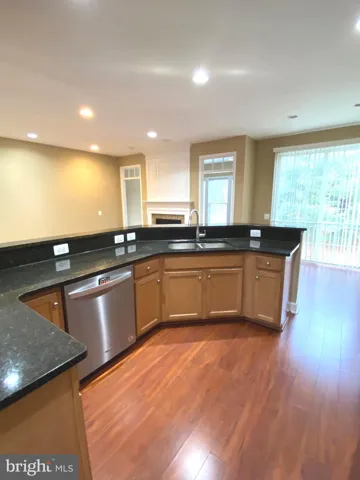 Welcome to this beautifully maintained end unit townhouse featuring warm hardwood floors throughout and a two-sided fireplace that adds charm to both the kitchen and adjacent den or office area. The kitchen is equipped with stainless steel appliances and upgraded countertops, perfect for everyday living or entertaining.