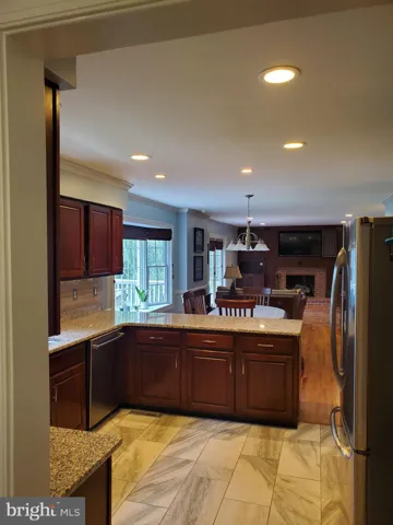 Step inside to find a separate large formal dining room, formal living area , open-concept kitchen/living room. Kitchen has granite countertops, and gleaming hardwood floors throughout. A cozy fireplace anchors the spacious living area, creating an inviting space for relaxing. The added touch of a wet bar and large bedroom with a full bath in the lower level makes it seem like an ideal space for entertaining guests or hosting family. Walk out basement into a beautiful backyard great for spending time with nature.