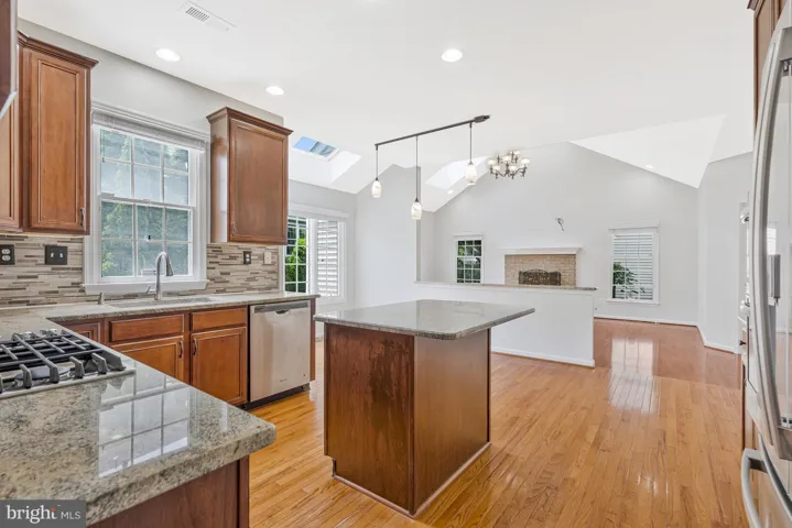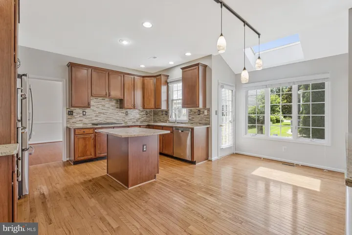 The formal living and dining rooms, adorned with rich crown molding, provide a sophisticated space for both intimate gatherings and grand entertaining. The chef’s kitchen is a true masterpiece, featuring a pristine center island, cooktop, double oven and a bright breakfast nook. This culinary haven flows seamlessly into the oversized family room, highlighted by a vaulted double story ceiling, skylights, and a cozy gas fireplace.