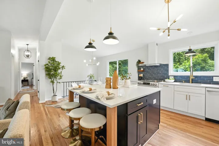 **$20 Price Improvement! **From the welcoming front porch to the soaring cathedral ceilings, and open floor plan, this home brings the wow! The stunning brand-new two-tone kitchen features a breakfast bar, floating shelves, pantry cabinet, quartz counters, tile backsplash, and stylish matte white & gold appliances. Fall in love with sumptuous finishes throughout, including luxuriously designed baths, gracious entertaining spaces, a wood burning fireplace, and original hardwoods. Main level primary bedroom with ensuite, plus two additional bedrooms and full bath. Downstairs offers even more room to roam with a spacious rec room with screen porch access, a fourth bedroom, and another sophisticated full bath. Quiet 1/4 acre lot borders woods on two sides, with a partially fenced yard, large storage shed, carport, and unique corner location which offers extra opportunities for parking. New roof, windows, electrical panel and more! All major systems updated… just move in and enjoy! Only .3 miles to bus, 2.6 miles to metro. Owner/Agent.