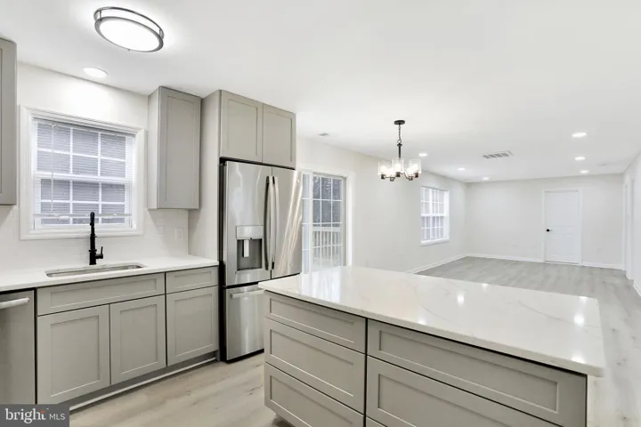 The light and bright interior features stylish LVP flooring throughout, sleek black fixtures, and neutral paint tones that create a cohesive and inviting atmosphere. The kitchen boasts gray cabinetry, stainless steel appliances, a pantry, and a spacious island—perfect for cooking and entertaining. Step outside to enjoy the peace and privacy of the large deck overlooking the woods. A rare combination of modern finishes and natural surroundings—ideal for those seeking comfort and tranquility.