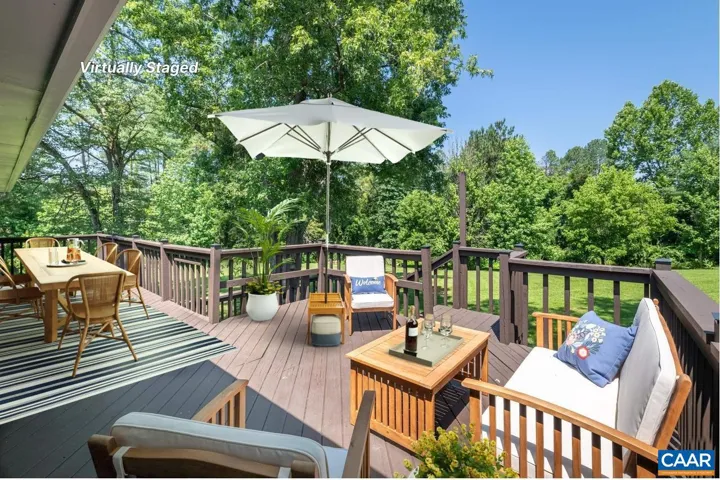BRING YOUR VISION! $20k UPDATING ALLOWANCE NOW OFFERED! Open your next chapter in this must-see brick home! Space for everyone with 5 bedrooms; main level living; 2 beautiful acres; wonderful privacy; and super convenient location, less than 15 minutes from Charlottesville. An extraordinary value! Bathed in natural light and ready for your personal touches. Much of the main level has been freshly painted and offers a living room, study/den, spacious eat-in kitchen, gorgeous family room with woodstove and its own brand new HVAC system plus primary suite with adjoining home office and 4 additional bedrooms. The bright and cheerful terrace level features a 2nd primary suite, rec room, 2nd home office and another awesome family room with wood stove. Absolutely ideal for multi generation living with plenty of room for a kitchenette, plus separate entrance and covered patio. Newly stained decking in rear is a perfect spot to entertain, unwind and take in the sights and sounds of nature. Neighborhood access to the Rivanna Reservoir via lovely woodland path. Minutes from schools, shopping, dining and restaurants. Short drive to Ivy Creek Natural Area and Chris Green Lake plus hiking/biking trails, swimming holes, wineries and breweries.,Oak Cabinets,Solid Surface Counter,Fireplace in Basement,Fireplace in Family Room