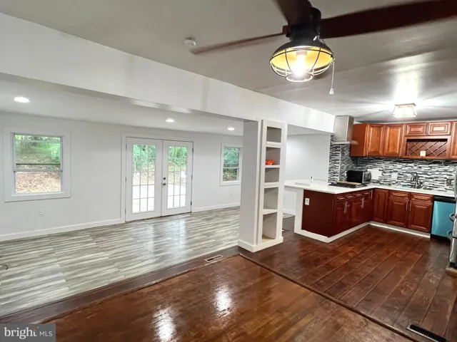 ***No showing from 7/12 to 7/15 due to Seller having the hardwood floor professionally refinished*** Discover this spacious 6-bedroom, 2.5-bathroom home in the desirable Broyhill Crest neighborhood! This 2,590 sqft single-family residence sits on a beautiful 0.24-acre lot, framed by fruit and flowering trees, creating a serene setting. Recent enhancements include a newer kitchen with stainless steel appliances, wood cabinets, and granite countertops, plus updated full baths on the main level. Enjoy the fresh interior paint, refinished hardwood floors, and a layout designed for modern living. The main level offers an open-concept living and dining area, a sun-drenched Florida room off the kitchen (perfect for family gatherings!), three large bedrooms, and a full and half bath. The versatile lower level expands your living space with three more generously sized bedrooms, a large recreation room, and a laundry area. The huge front yard provides a long driveway for up to six cars, concrete steps, and charming landscaping. The fully fenced backyard is an oasis with a large patio, two sheds, and abundant flowering and fruit trees—ideal for outdoor entertaining. Nestled in a friendly, quiet community, this home offers easy access to shopping and dining at the Mosaic District, downtown Falls Church, and local parks. Major highway access makes commuting to D.C., Arlington, Tysons Corner, and Alexandria incredibly convenient. This property offers a fantastic opportunity to personalize and enhance its charm. Home needs some TLC and is being sold as-is.
