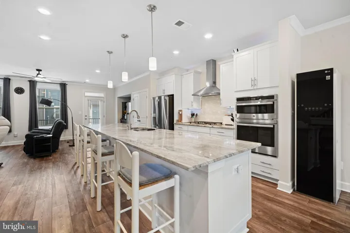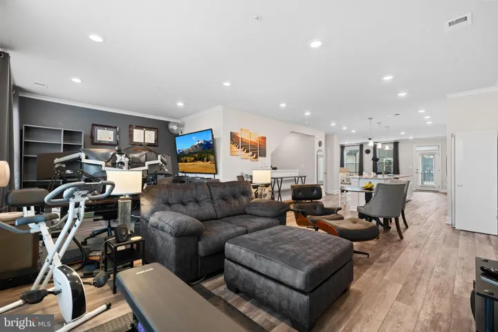 Only 3 years young, this stunning city-style townhome is not only loaded with thoughtful upgrades throughout but is conveniently located just steps from Wegmans, Town Center, Shops, Starbucks, restaurant options, Onelife, movie theater and more! As you enter the home, beautifully stained oak stairs welcome you while Luxury Vinyl Plank flooring throughout two levels offer a seamless transition from room to room. The heart of the home is the exceptional open-concept kitchen, centered around a striking oversized island, pristine white shaker cabinetry, stainless steel appliances, elegant stone countertop and a neutral glass tile backsplash-a perfect finish to this space. Custom LED uplighting to the cabinets and island create a warm, inviting ambiance, while lofty 9-foot ceilings enhance the bright, airy feel throughout the main level. Enjoy the fresh air on your very own balcony or cozy up in the living room by the sleek modern electric fireplace that offers an element of contemporary style while providing comfort. Upstairs, the luxurious primary bedroom retreat boasts an elegant tray ceiling, a generous walk-in closet with a custom organization system, and a spa-inspired ensuite bathroom with custom tile work and finishes. Additional appointments include **a spacious walk-in upper-level laundry room complete with an upgraded utility sink**additional electrical outlets thoughtfully installed for ease and utility ** 1-car garage with 50 AMP EV charger and finished/painted walls while providing storage and convenience** Recessed Lighting on main level and Primary Bedroom** Newer Ceiling Fans** Many custom built-in Shelves** This meticulously maintained home has been beautifully upgraded and loaded with details in mind — an absolute must-see and will not disappoint! Beverage bar and extra refrigerator in kitchen conveys. ****Mortgage savings may be available for buyers of this listing!!!****