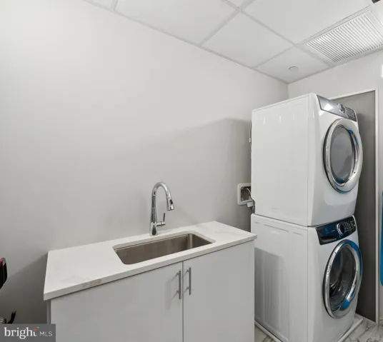 The second bedroom offers privacy and comfort for guests, featuring its own ensuite bath and two spacious closets. A separate laundry room with a full-size washer, dryer, and wash sink enhances convenience, while a stylish powder room is thoughtfully included for visitors.