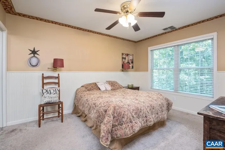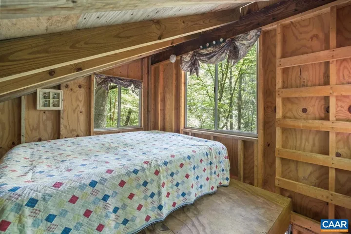Lots of space and privacy! Over 15 wooded acres with a creek making it the perfect place for exploring, play, wildlife viewing, or hunting. Agriculturally zoned with NO home owners association or restrictions and NO neighbors in sight! Home has three levels plus a basement providing plenty of sleeping space (Plus other rooms for den and/or home office) and room to spread out for work/schooling/hobbies. Main level is open with great room, dining, and kitchen, 2nd floor has 4 bedrooms and 2 baths plus laundry, 3rd attic level with stairway from a bedroom is heated/cooled with windows (just needs flooring to be finished), basement is mostly finished with a family or rec room, and 2 other rooms for sleeping or home office, plus a secure concrete bunker or storage room. Extras: Covered front porch, spacious back deck (hear and see stream!), garage and carport, energy efficient – low maintenance vinyl with hardback polar wall and poured concrete walls, concrete drive (secure with a lockable arm/gate at entry), security/video system, reverse osmosis water purification, fiber optic internet, and a small cabin/playhouse with sleeping loft, only 1 mile from Rt 29 making it perfect for a split commuting to Lynchburg and Charlottesville.,Formica Counter,Glass Front Cabinets,Oak Cabinets,Wood Cabinets,Fireplace in Great Room