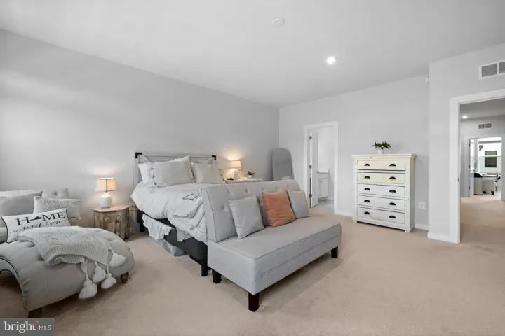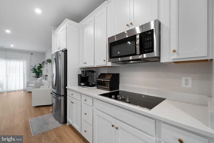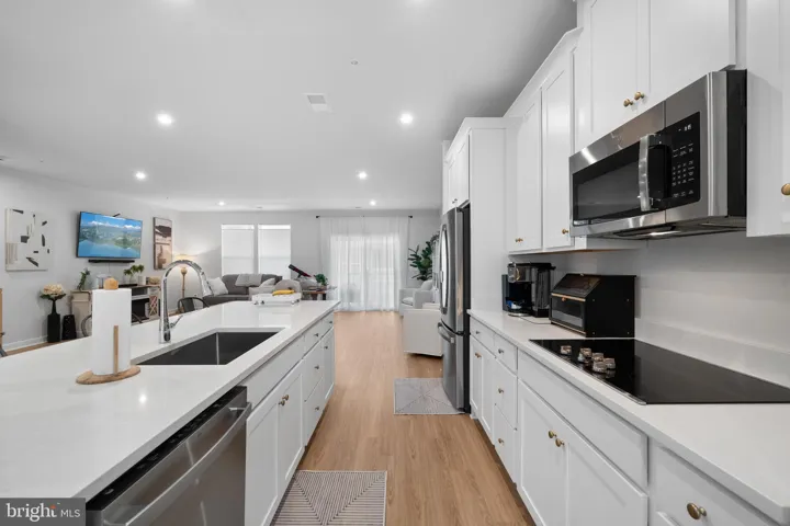 This 3-bedroom, 2.5-bath home features 9’ ceilings throughout and one of the LARGEST BALCONIES in the community. The southeast-facing orientation brings in abundant natural light, while the open-concept layout creates an ideal flow for everyday living and entertaining. Luxury vinyl plank flooring runs throughout the main level, anchored by a chef-inspired kitchen with white cabinetry, stainless steel appliances, quartz countertops, and an oversized island that connects seamlessly to the living and dining areas.