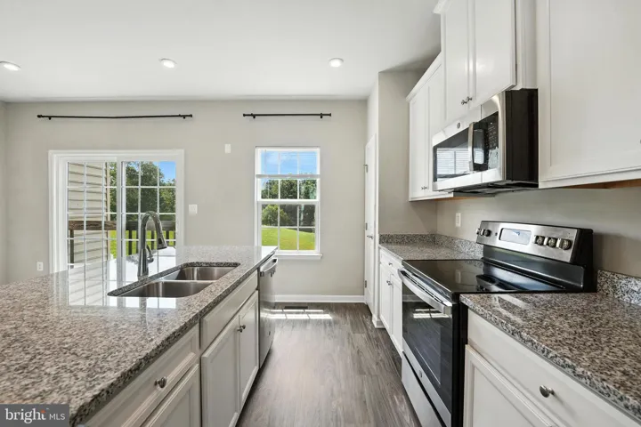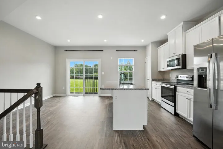 The entry-level features a versatile bonus living area with direct access to the backyard—perfect for a rec room, home office, or casual lounge space. Upstairs, the heart of the home awaits with a bright, open-concept main level. A gourmet kitchen anchors the space with granite countertops, stainless steel appliances, an oversized island, and a generous dining area—ideal for entertaining or everyday life. The adjoining family room is light-filled and spacious, offering seamless flow for gatherings and relaxation.