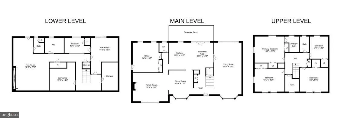 The main level boasts an expansive layout designed for comfort and flexibility: enjoy a large, modern kitchen with a generous island, an eat-in breakfast area that opens to a screened deck, separate living, dining, and family rooms, plus a private office or fifth bedroom—perfect for remote work or guests.