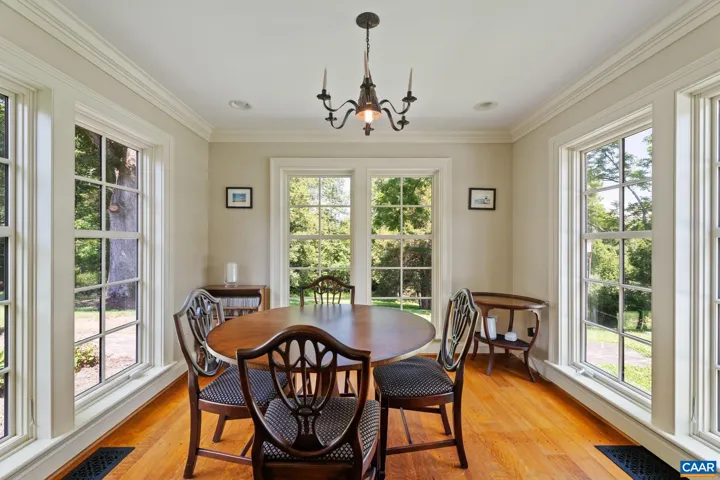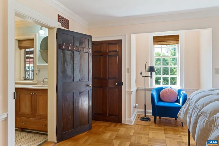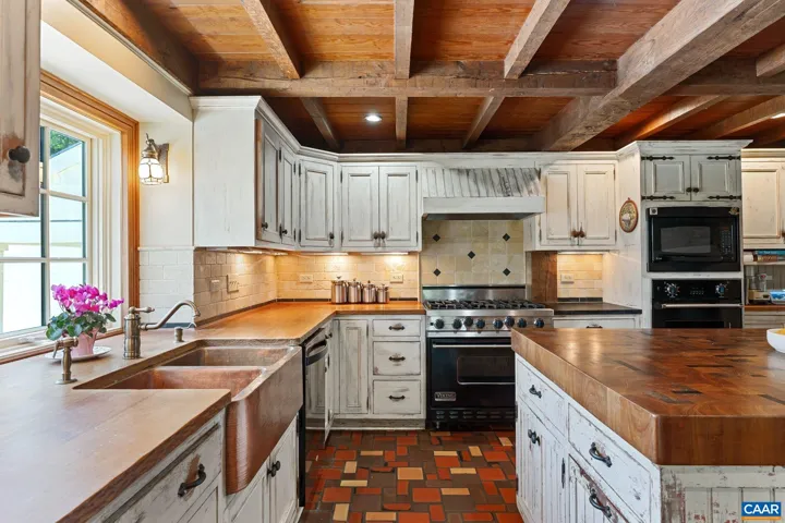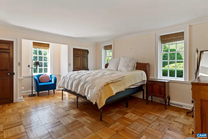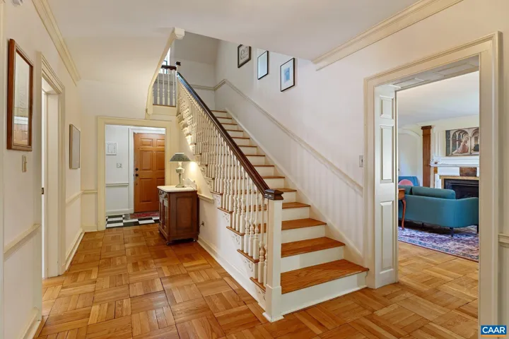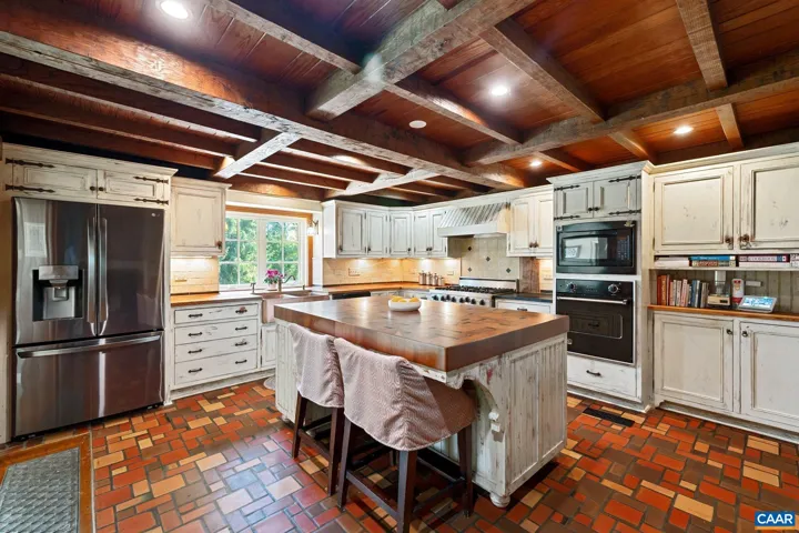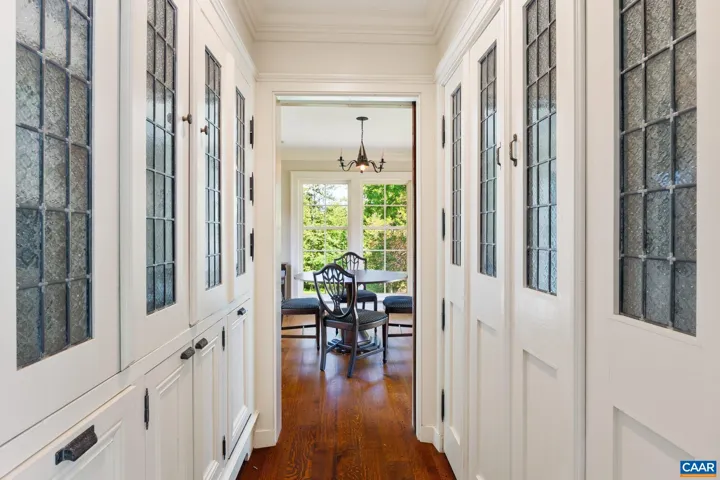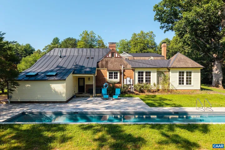 Tucked away on 11.5 peaceful acres, this French-style estate blends timeless European design with modern comforts. Originally built in 1964 using imported materials, the home has been thoughtfully renovated and expanded. It features 4 bedrooms, 3.5 baths, and a dramatic hallway with marble and wood inlay floors, custom built-ins, and a wall of windows. The spacious European-style kitchen includes a fireplace, window seat, and large island?ideal for everyday living and entertaining. A formal dining room and sunlit breakfast room add character and charm. Living and family rooms boast floor-to-ceiling windows framing pastoral and lake views. The fourth bedroom serves well as a guest suite or office with its own bath and entrance. Outdoor spaces include a covered porch, bluestone patio, and a pristine lap pool. A three-stall barn makes it equestrian-ready. Private yet close to town, this refined retreat offers serene living in a storybook setting.