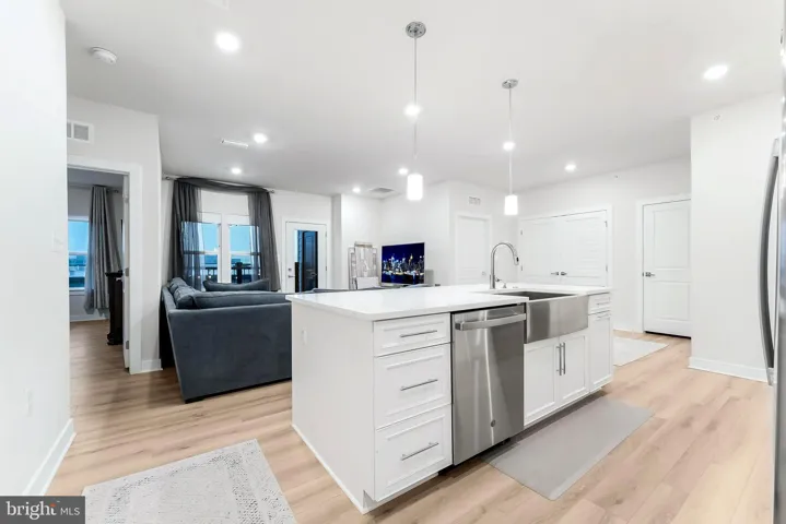 Top-Floor Elevator Condo with Sunset Views – Like New – Garage Parking Included & Immediately Available. You will love the privacy and quiet atop Mosaic Park’s prime location. Walk or bike to the Silver Line Metro, or enjoy nearby shops, dining, and amenities. The open-concept layout showcases a sleek, modern design with sophisticated finishes, centered around a large quartz island. The spacious living and dining areas flow seamlessly onto the large balcony, creating the ideal indoor-outdoor connection. TWO generously sized bedrooms are thoughtfully positioned on opposite sides of the home. The primary suite features a large walk-in closet, dual vanities, and a spa-like shower. The secondary bedroom offers flexibility for guests, a home office, or additional living needs. Further highlights include full-size in-unit laundry, secure building entry, and a reserved GARAGE parking space with immediate availability—plus EV charging on-site.
