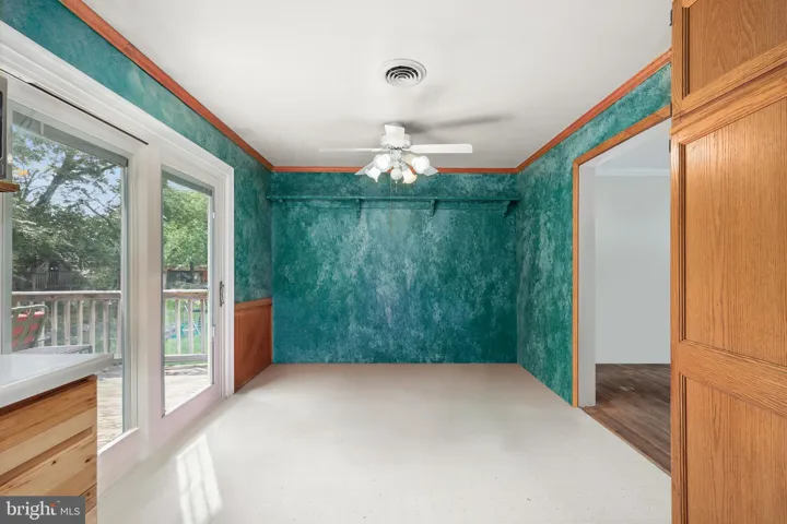 The main level offers a spacious living area with original hardwood floors, a light-filled bay window, and an open flow into the kitchen and dining area. The kitchen features solid wood cabinetry, a full appliance package, and direct access to the deck overlooking a fully fenced backyard—ideal for relaxing or entertaining.