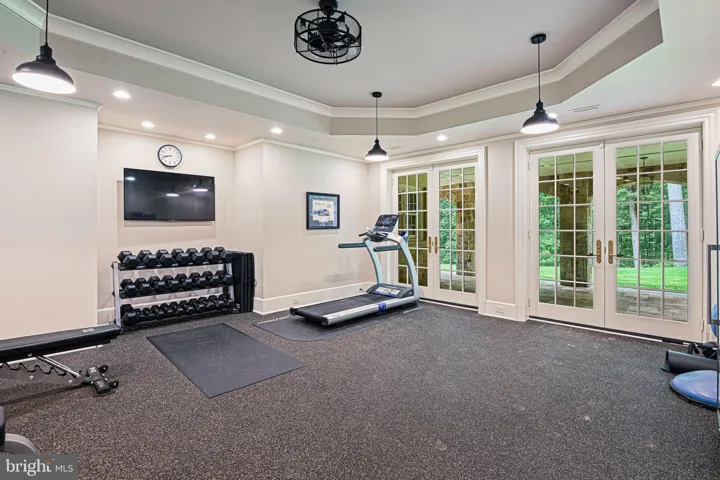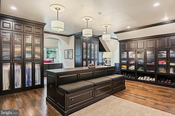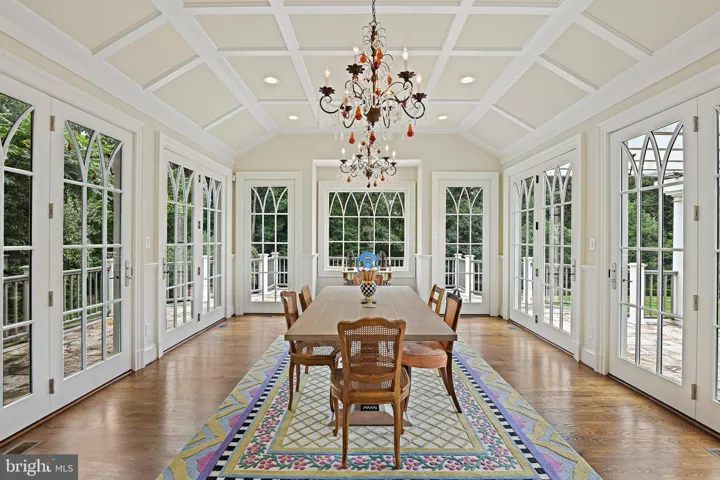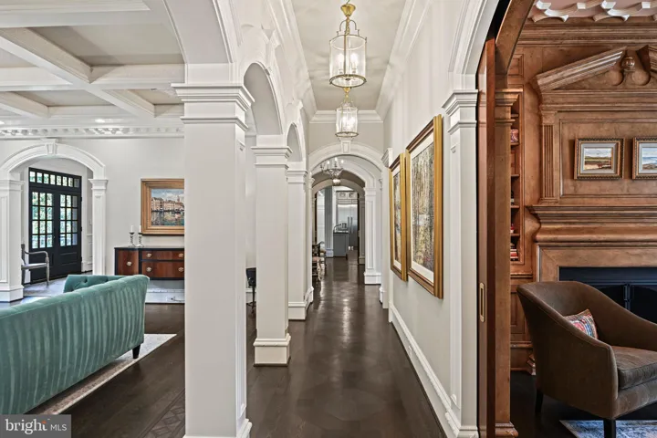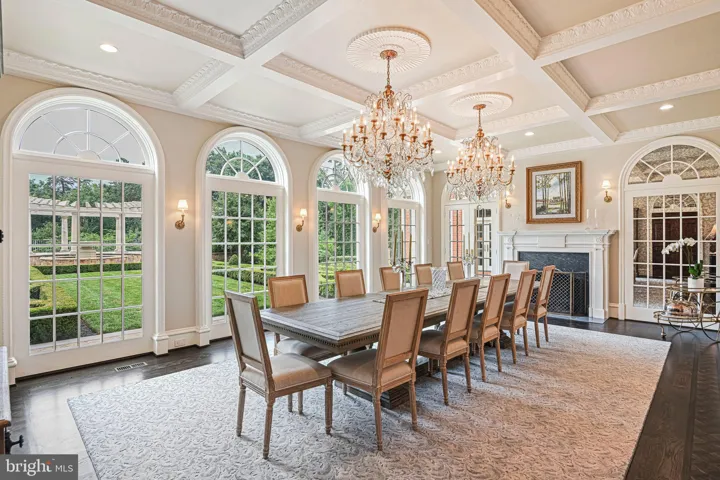 The Primary Suite is a wing of its own, featuring dual dressing rooms, a sitting room with coffee bar, a spa-inspired marble bath with a steam shower, a fireplace, and balcony access overlooking the grounds. Designed for both everyday comfort and extraordinary entertaining, the estate includes a chef’s kitchen with Thermador appliances; multiple living rooms, a library, a home gym, a steam room, a sauna, a jetted hot tub spa room, and access to one of the largest residential pools in Fairfax County with grotto waterfall, fire bowls, infitity edge, and slide.