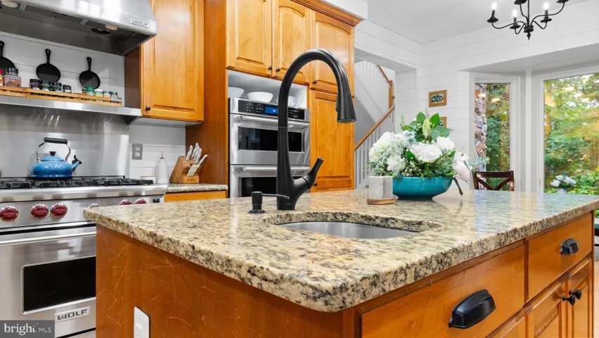 The main-level primary suite provides a peaceful retreat with comfort and privacy. The gourmet kitchen will delight any chef, featuring a built-in 6-burner Wolf stove, high-end stainless appliances, and generous space for hosting and gathering.