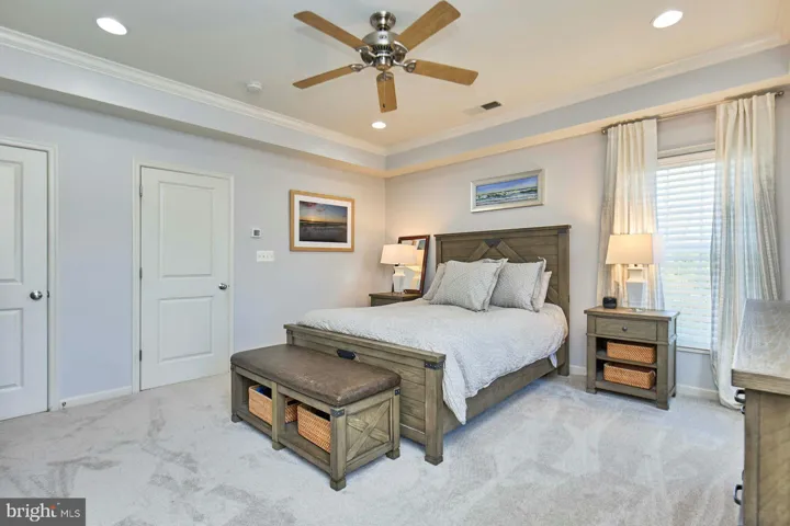 Upstairs, the luxurious primary suite includes a tray ceiling with recessed lighting, a ceiling fan, and a custom sliding barn door leading to a renovated en-suite bathroom. Enjoy dual rectangular undermount sinks, a granite vanity top, and an oversized ceramic tile shower with glass door, built-in bench, and shelving. The Barn Door, Vanity top, sinks and shower door were all completed in 2021.