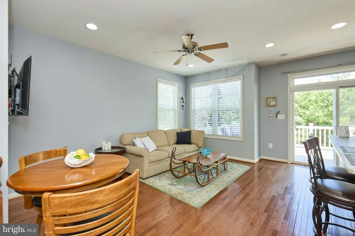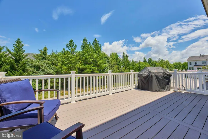 The kitchen flows seamlessly into the bright family room, which includes a wall-mounted TV and access to the large composite deck, complete with a gas line for grilling—perfect for entertaining or relaxing outdoors.