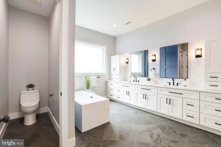 Welcome to 8525 Raleigh Ave., a stunning new construction luxury modern farmhouse by Ricky Serrano of Ricky Can Build It. Just outside the beltway in the Woodson HS pyramid, this soon to be completed contemporary home is a masterpiece of design and craftsmanship situated on over a half acre lot in the quiet Wakefield Forest community. You will be instantly wowed by the luxurious presence of this home. This home boasts over 7,100 square feet of top-of-the-line fixtures and finishes, 10-foot ceilings throughout, hardwood floors (main and upper levels), luxury vinyl plank flooring (lower level), a flat and spacious back yard, and so much more! Stepping into the foyer you have a direct line of sight to the rear of the home, immediately to your left you will find your home office with board and batten wall details and an abundance of natural light. This room has a glass french door entry and pocket doors on the interior for privacy. The separate formal dining room is perfect for entertaining with access to the kitchen via the walkthrough butler’s pantry and separate walk-in pantry offering ample storage. The gourmet kitchen is a chef’s dream, featuring Thermador stainless steel appliances, a 10-foot center island with waterfall edge luxury quartz countertops and designer series maple cabinetry. The kitchen opens to a casual dining area and then the spacious family room with a stunning gas fireplace with custom surround with an abundance of natural light. Bask in indoor-outdoor entertaining with 10-foot wide by 8-foot tall sliding doors from the family room to the Trex deck. Round off the main level with a bedroom with full ensuite bathroom, powder room off the main corridor, and mudroom with direct garage access. Access the other levels of the home via the central oak staircase with cable railing system. The spacious upper level hosts five spacious bedrooms with their own ensuite bathrooms and walk-in closets including the primary suite. All bathrooms feature Kohler toilets, Delta shower systems and upgraded maple vanities. The primary suite is situated at the rear of the home and offers stunning natural light with numerous windows and dual walk-in closets with custom cabinetry. Enjoy the spa-like ensuite primary bathroom with soaking tub, modern barrier free shower with floating bench and Delta shower system. The maple vanity offers dual sinks and ample storage. Finish off the upper level with a large hall linen closet and separate laundry room featuring built-in cabinetry with quartz counters and a sink. The lower level is an entertainer’s paradise with a wet bar offering a wine and beverage fridge, quartz counters, sink and plenty of storage. Enjoy access to the flat back yard off the living area with 10-foot wide sliding doors to the patio. The lower level also offers an additional bedroom and full bathroom as well as home office or gym space, storage and mechanical room. This modern farmhouse is equipped with energy efficient features including dual 50 gallon electric water heaters, and an advanced insulation package, ensuring energy efficiency. The garage is equipped for electric vehicle (EV) charging, highlighting the property’s modern amenities. The home’s exterior is adorned with James Hardie – Lap Siding with ColorPlus Technology, complemented by a 30-Year Architectural Roof Shingles and striking Metal Roof Accents. Pella Windows frame the property, ensuring durability and style, while oversized 6-Inch Aluminum Gutters and downspouts, along with an interior and exterior foundation drain system with sump pump. This contemporary luxury home combines state-of-the-art features with meticulous attention to detail, offering an unparalleled living experience.
